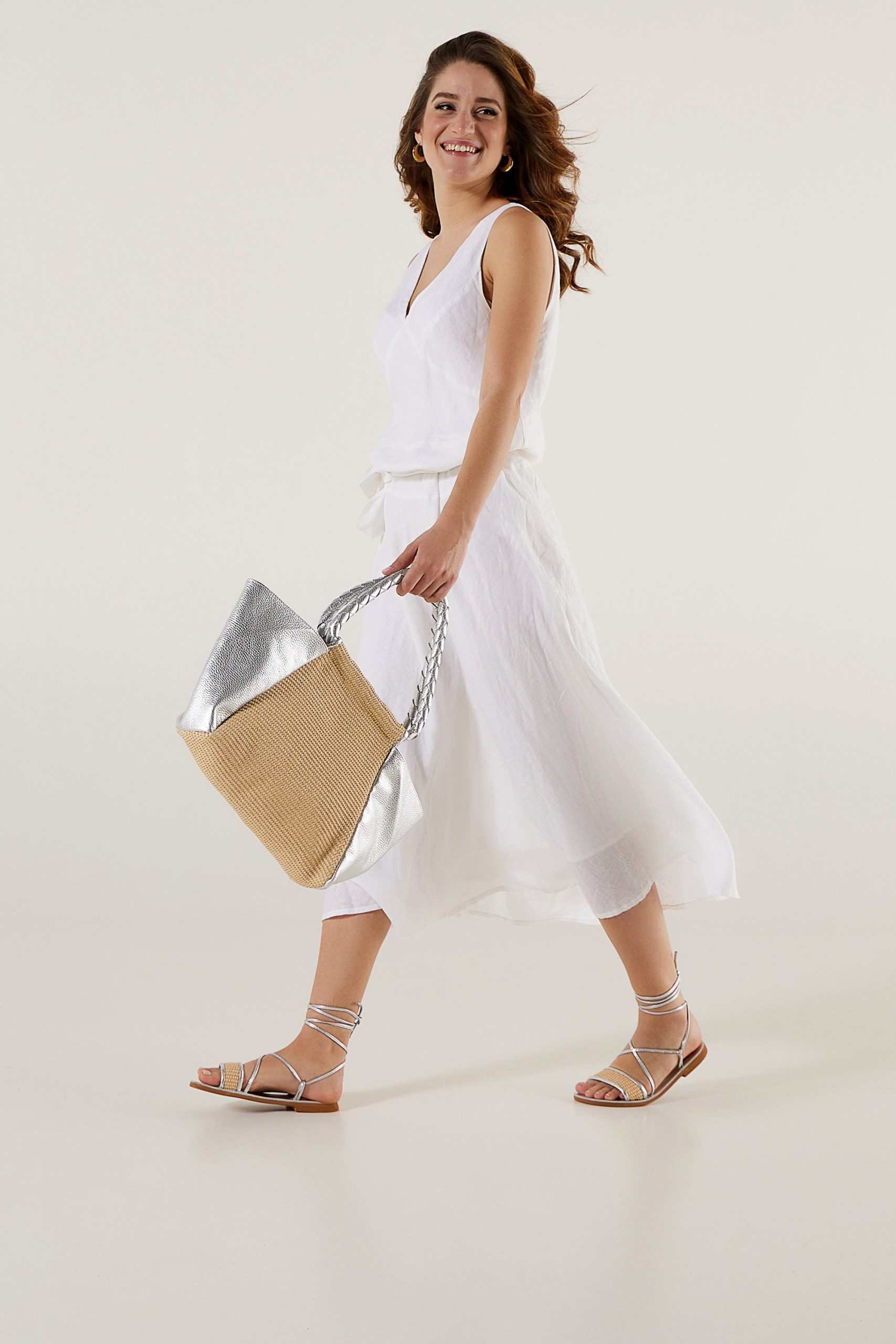 Color: Silver straps with natural beige woven accent for a fresh summer vibe