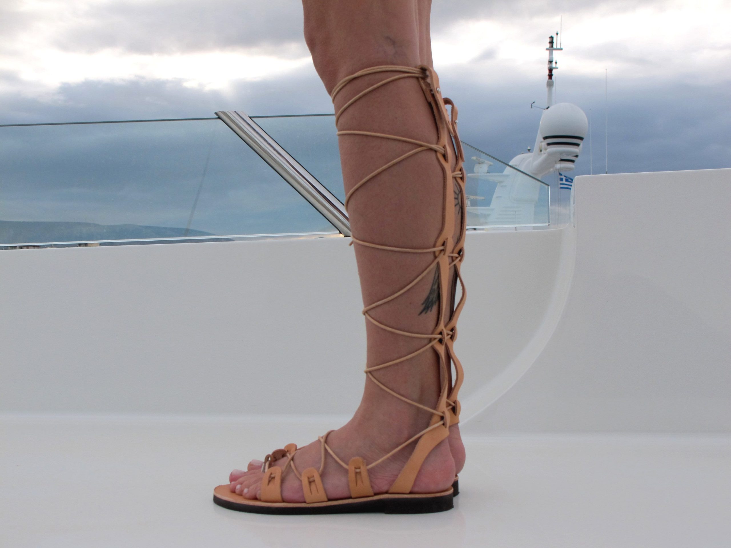 Design: Knee-high gladiator silhouette with long lace-up straps